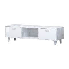 Тумба ТВ Эго Т-3 2-ящика ( на ножках) Бетон светлый/Белый глянец