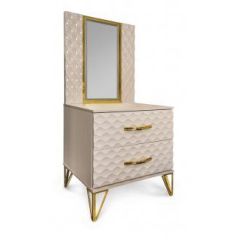 Тумба прикроватная Lara + панель с зеркалом (бежевый глянец)
