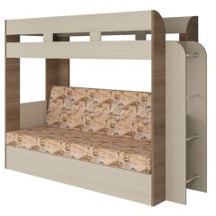 Кровать 2-х ярусная с диваном Карамель 75 (Саванна) Ясень шимо светлый/темный